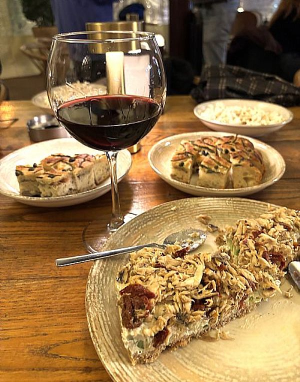 Pastanýn alt tabaný ekþimaya karakýlçýk kurutonu ve ceviz kýrýklarýndan oluþuyor. Orta katmaný Foça süzme yoðurdu, mascarpone peyniri, karides, avokado dilimleriyle, üst katmaný da isli melanur balýðý ve kuru domates ile taçlanmýþ. Lezzet mi? Kanat takýp uçuyor tabi…