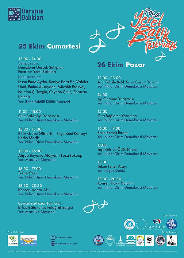 Sürdürülebilir Yaşam Derneği (SUYADER) tarafından, S.S. Foça Merkez Su Ürünleri Kooperatifi ortaklığıyla İzmir’in Foça ilçesinde hayata geçirilen Buranın Balıkları projesi kapsamında 25-26 Ekim 2025 tarihlerinde Foça Yerel Balık Festivali düzenleniyor.