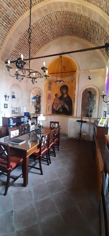 Muhteşem bir restorasyon ile ayağa kaldırılan kilisenin girişinde gökyüzüne uzanan iki dev servi karşılıyor ziyaretçileri. Biraz yokuş çıkıldığı için doyumsuz manzarasıyla teras kafede nefeslenmek gerekiyor. Pandemi nedeniyle ziyaretçi sayısı kısıtlandığı için beklemek gerekiyor, bu bekleme süresini terasta çay içererek değerlendirebilirsiniz. Sevim ve Necdet Kent Kitaplığı'nın hemen yanında bir değirmen bulunuyor. Bu değirmenin giriş katında küçük hediyelik eşyalar ve yörenin zeytinyağını satan dükkanlar yer alıyor. Kitaplığın ön ve arkasındaki kafe ise nefes kesici bir manzaraya sahip. Ayvalık, Şeytan Sofrası, Dalyan Boğazı, Tavuk Adası, Cunda, Çataltepe, Hasır Adası ve Edremit Körfezi, tümüyle bu terastaki kafeden görülebiliyor.