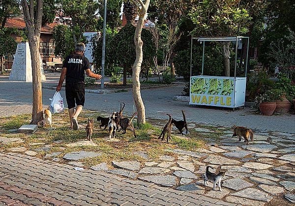 Bu kentte neredeyse her sokakta, her evin ya da dükkânýn önünde mutlaka bir kediye rastlarsýnýz. Kimi pencere önünde güneþi izler, kimi kapý eþiðinde sabýrla bir lokma bekler. Sarmanlar, tekirler, melez yavrular ayaklarýnýza dolanýr. Hiçbiri aç kalmaz; sahipsiz sandýðýnýz sokaklarýn bile mutlaka iki kapýsý vardýr. Birinden ses çýkmazsa, diðerinde karnýný doyuracaðýný bilir.