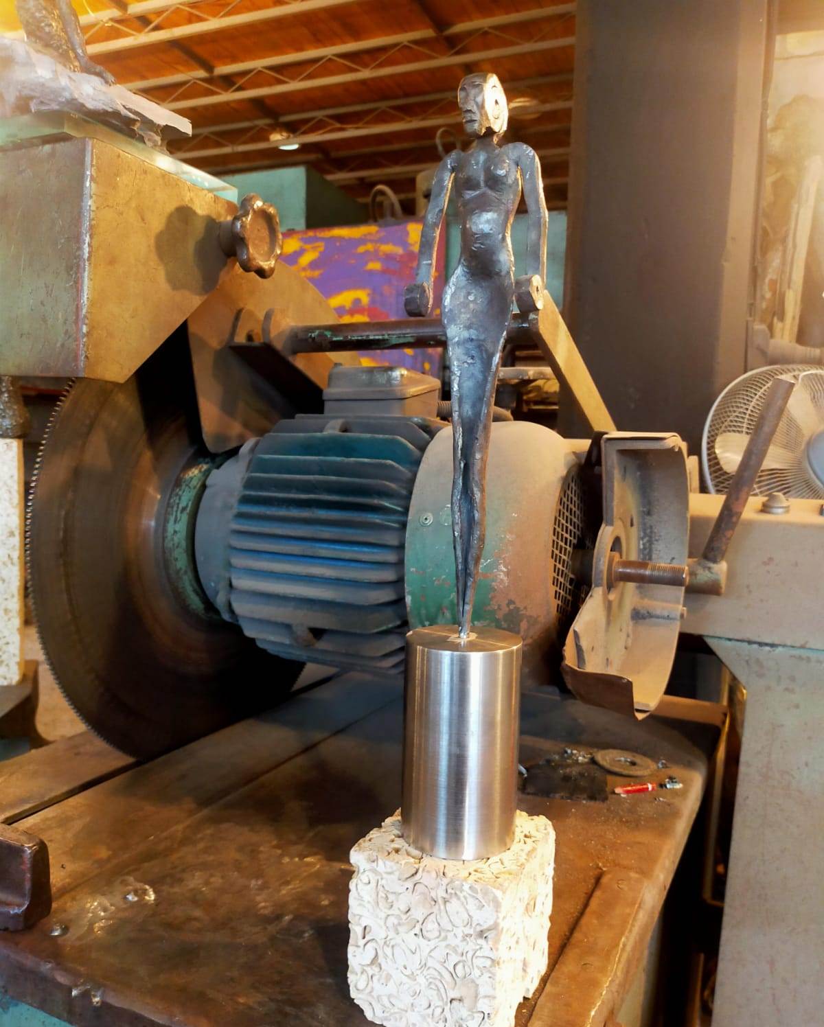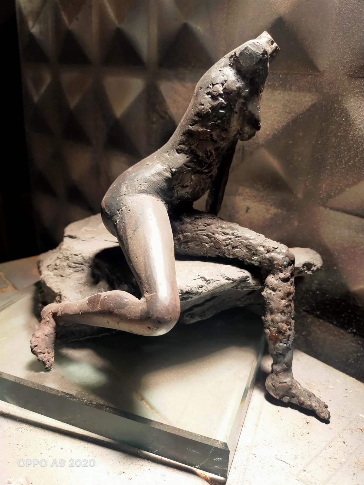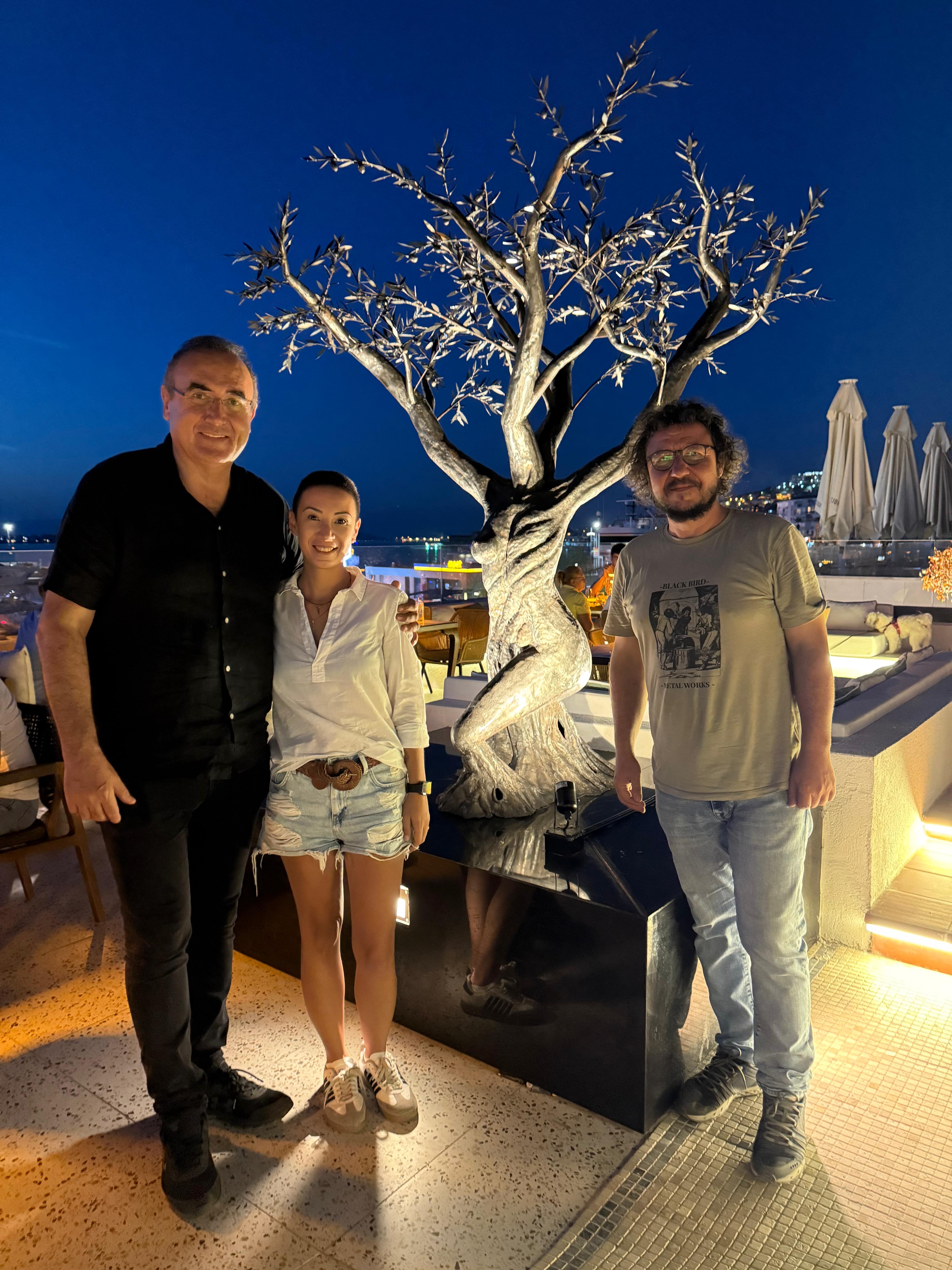 “Her fırsat bulduğumda, benim için bir ‘Akademi’ olan Arif Buz’un atölyesine giderdim. Atölye gerçekten bir okul gibiydi. Ayvalık’ta yaşayan ya da tatil için gelen pek çok değerli sanatçı orada buluşurdu. Saatler süren fikir alışverişleri, tartışmalar ve etkileşim bizlerin ufkunu açardı. Sevgili Arif ağabeyimin sanat yolculuğumda çok emeği vardır. Pandemi döneminin o karanlık günlerinde birlikte atölyeme kapanıp günlerce üretim yaptık. O günlerden çok güzel işler çıktı. İlk sergimi, 2020 Eylül’ünde Sanayi’deki atölyemde Arif Buz ile birlikte açtım. İlk heykellerim, ilk heyecanımdı.”