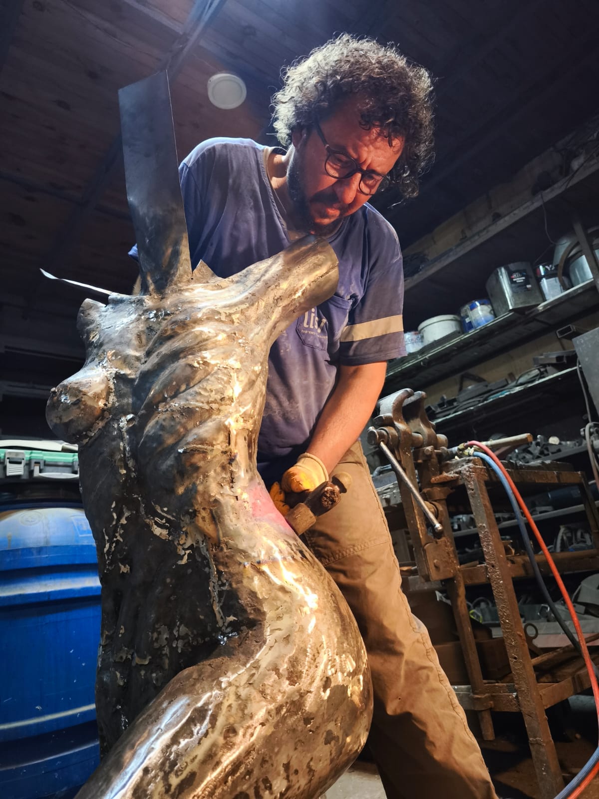 “Öncelikle atölyenin adını değiştirip “Karakuş Tasarım Atölyesi” koydum. Atölyede iş seçmeye, bana keyif veren işleri almaya ve donanımlı mimarlarla çalışmaya özen gösteriyordum. Sonra mimar olmaya karar verdim; fakat atölyenin yoğun temposu Ayvalık dışına gidip eğitim almama izin vermiyordu. Bu sebeple ilk adım olarak Balıkesir Üniversitesi Ayvalık Meslek Yüksekokulu Mimari Restorasyon Bölümü’nü kazandım. 2023 yılında okul birincisi olarak mezun oldum. Atölyede demir işlerinin yanında mimari restorasyon çalışmaları yaparak Ayvalık’ın tarihi dokusuna katkı sunmaya başladım. Bu arada resim karalamalarım çoktan üç boyutlu hâle gelmişti. Demirden ve taştan heykel denemeleri yapıyordum.”