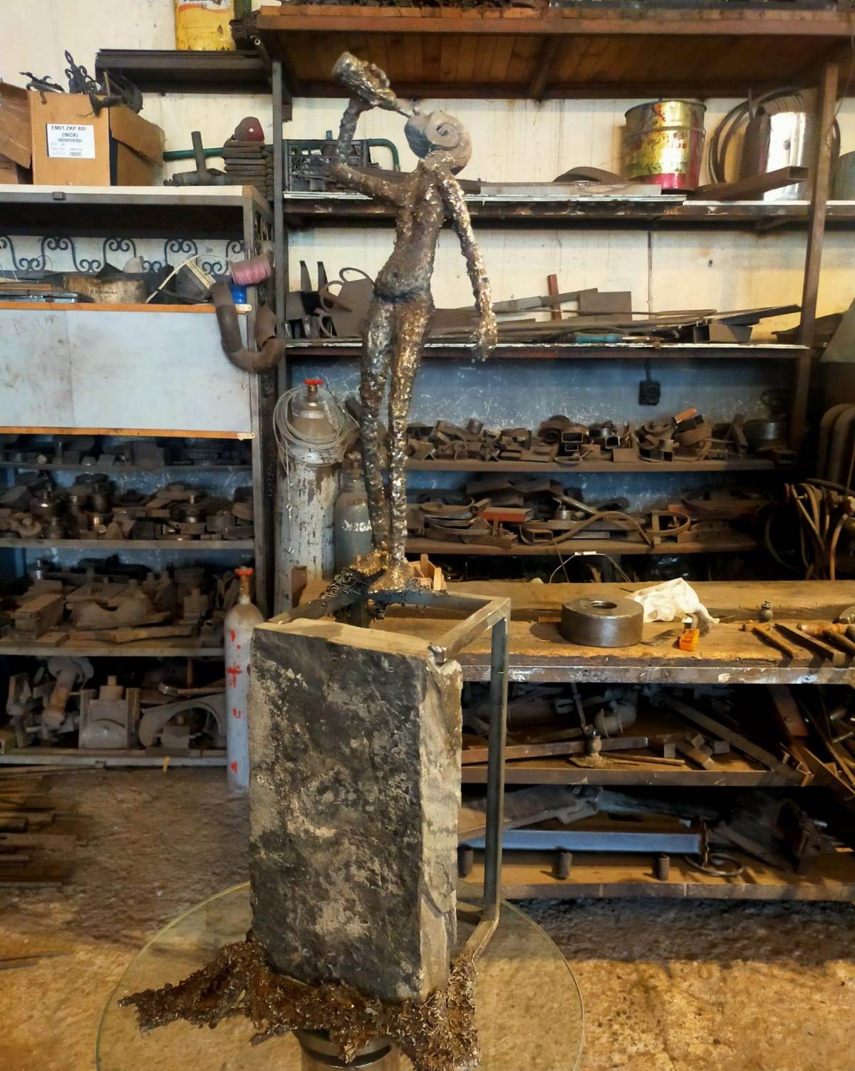 Dokuz Eylül Üniversitesi Makine Teknikerliği Bölümü’nde eğitimine başlayan ancak bu bölümden keyif almadığını fark eden Ayvalıklı heykeltıraş Muhittin Karakuş ile, babasının demir atölyesinde “ateşle yoğrulan sanat” dediği heykeltıraşlık serüvenini konuştuk.
