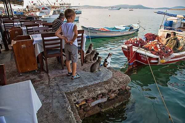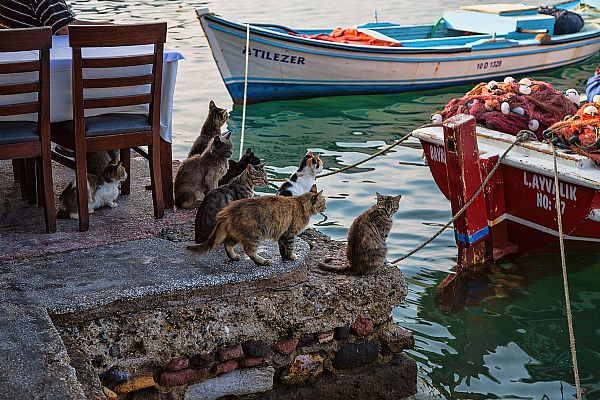 Bu kentte balýkçýlar kedileri asla aç býrakmaz. Yazýlý olmayan, kuþaktan kuþaða aktarýlan bir liman geleneðidir bu. Balýkçýlar için kediler yalnýzca sevimli sokak hayvanlarý deðil; emeðin, bereketin ve paylaþmanýn sessiz ortaklarýdýr. Balýklar ayýklandýkça küçük parçalar kedilere ayrýlýr. Kediler mideleri dolana kadar bu þölenin tadýný çýkarýr, sonra sessizce bir köþeye çekilip güneþin altýnda uykuya dalar.
