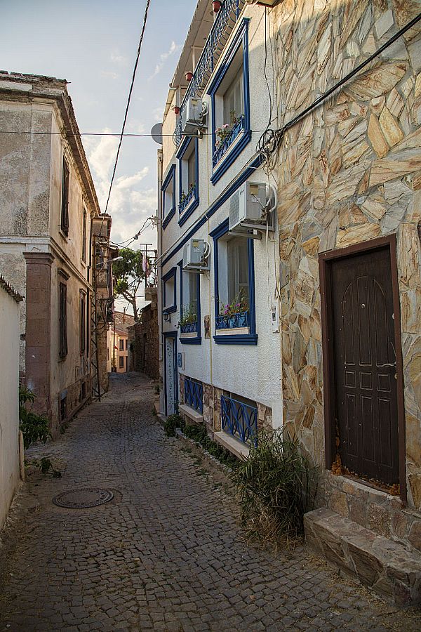 Ve sarýmsak taþý… Bu kentin kimliðine sinmiþ o eþsiz doku. Binlerce yýl önceki lav akýntýlarýnýn bugüne uzanan izi. Dayanýklý, güçlü, vakur… Belki de bu yüzden Ayvalýk evleri hâlâ dimdik ayakta. Bakýmlý olanlara bakarken gözlerinizi alamayýþýnýz boþuna deðil; taþýn asaleti var üzerinde.