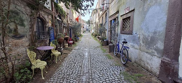 Bazý þehirler vardýr; sokaklarýnda yürürken yalnýzca adýmlarýnýzýn sesini deðil, geçmiþin fýsýltýlarýný da duyarsýnýz. Ayvalýk iþte tam da böyle bir yer. Ýki bini tescilli, binlerce eski yapýnýn bulunduðu bir kent Ayvalýk. Ayvalýk’ta yürümek, yalnýzca yürümek deðildir; zamana dokunmaktýr. Daracýk sokaklar… Arnavut kaldýrýmlarý… Yokuþlar, çýkmazlar, sessizliðe gömülmüþ köþeler… Duvar diplerinden gökyüzüne uzanan akþamsefalarý, zakkumlar, hatmiler… Taþlarýn arasýndan inatla filizlenen yabani otlar… Mama bekleyen kediler, mahallenin aðýrbaþlý köpekleri… Hepsi, birbirinin içine geçmiþ bir hayatýn sessiz tanýklarý gibi.